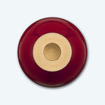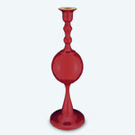 • This sculptural candle holder features a bold dark red metal sphere as its central design element, resting on a sturdy circular base and topped with a sleek candle plate