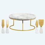 Elegant White Marble Cheeseboard with Gold Cheese Knives
