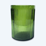 • This emerald glass hurricane features a beautiful ribbed texture that adds depth and character to any setting