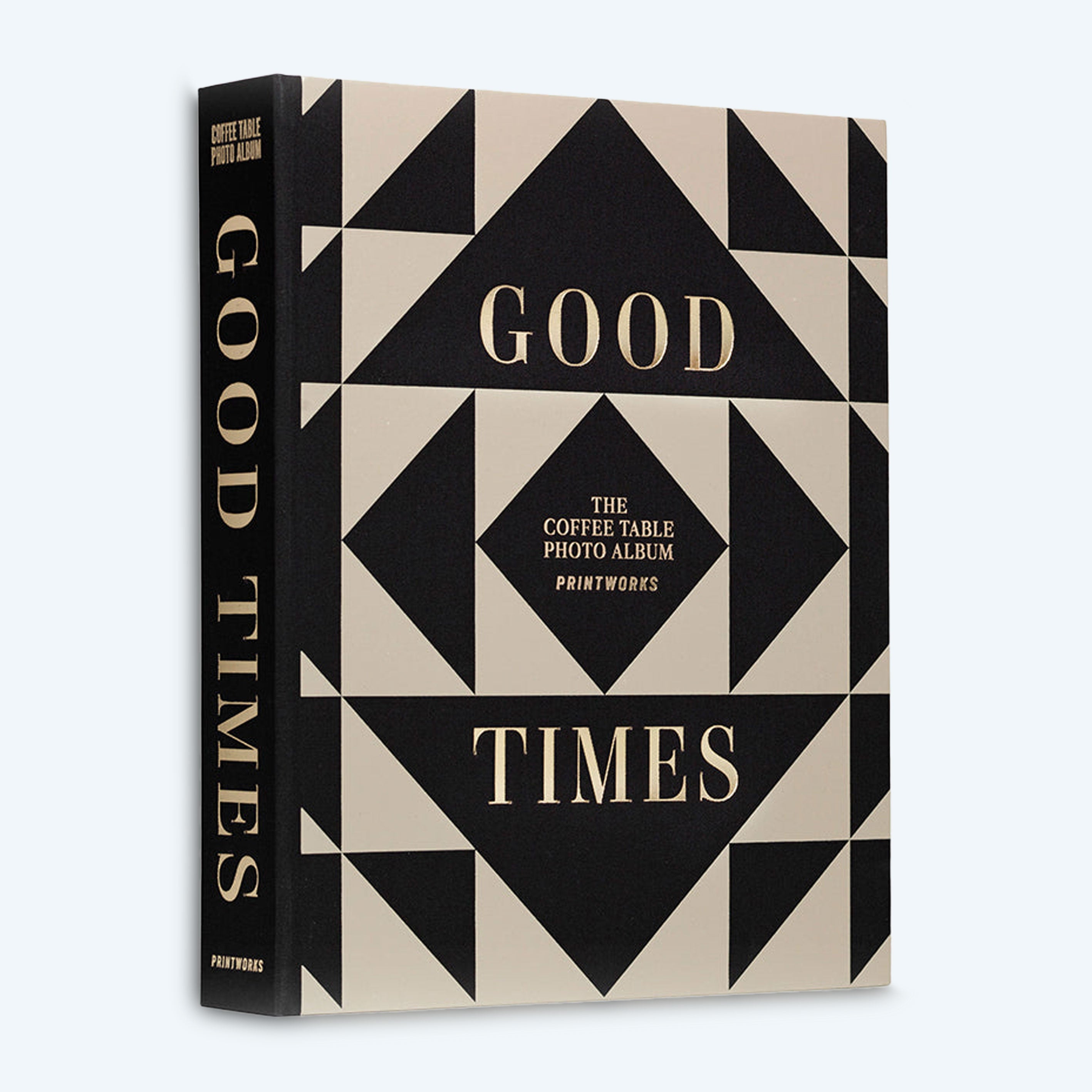 • This triangles coffee table photo album, designed with an elegant beige and black cloth cover and finished with gold-foiled text