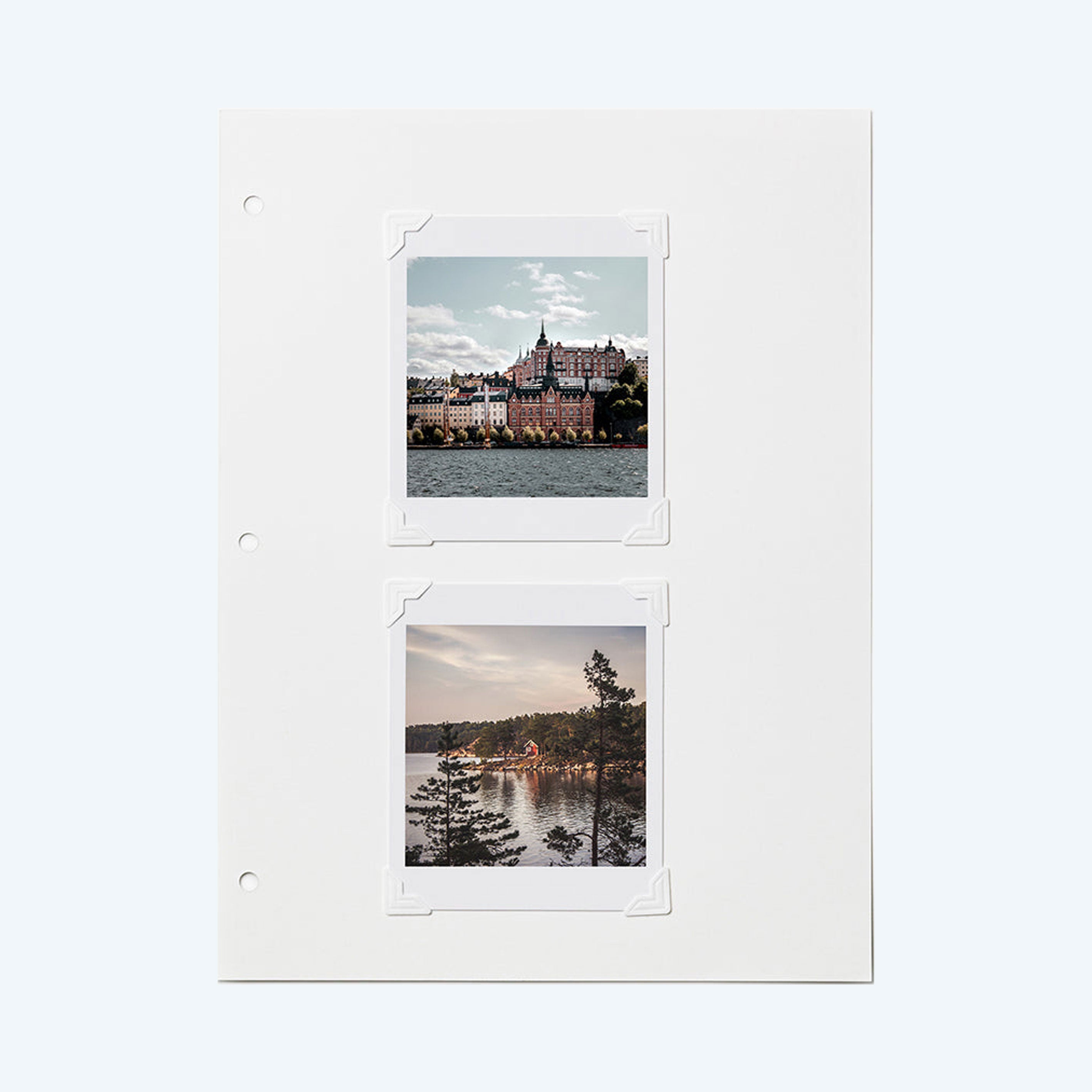 • Display and protect your photos with matte white stick-on photo corners