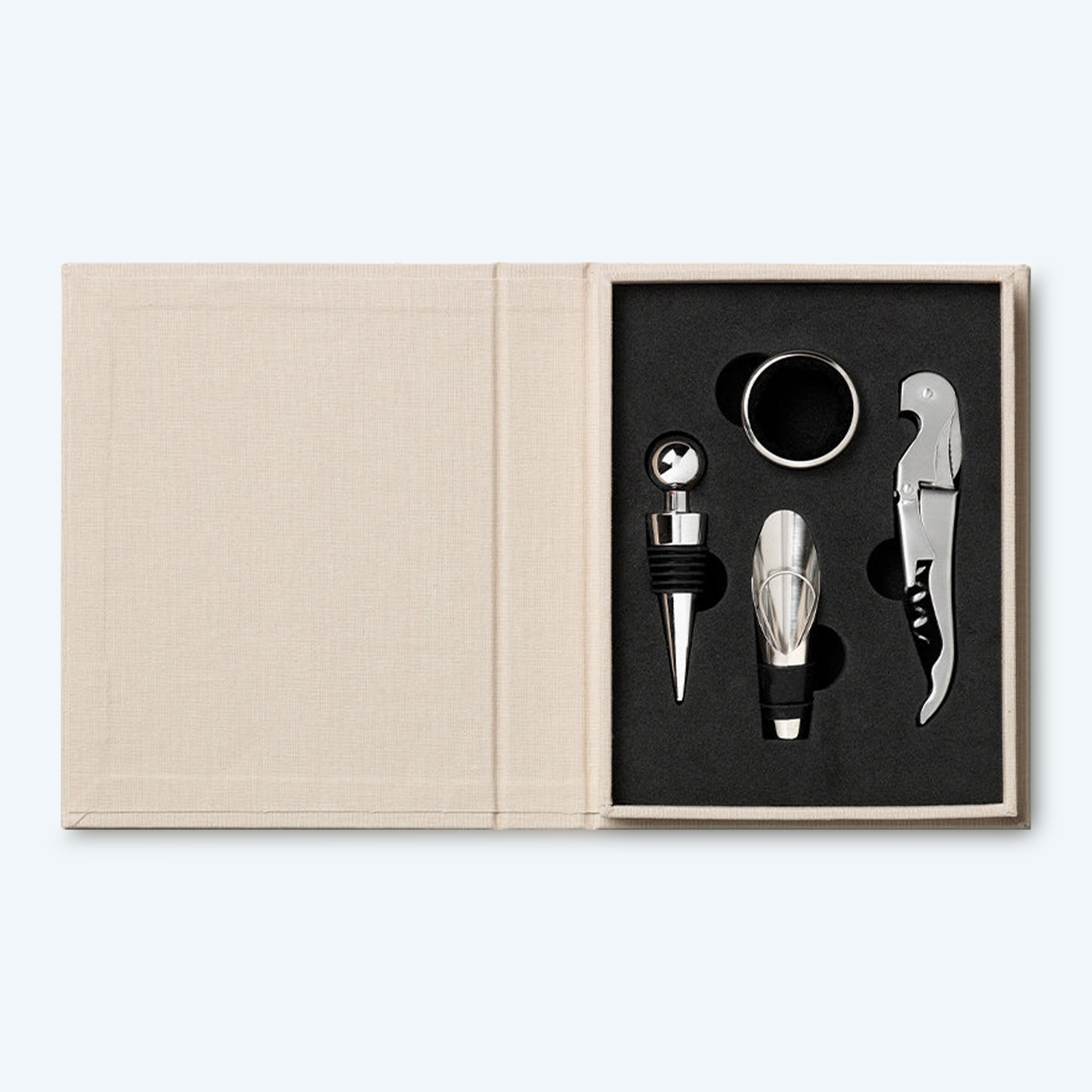 • Elevate your wine experience with this essential wine tool set, beautifully presented in a book-style gift box—perfect for housewarmings or farewell gifts