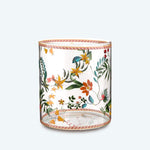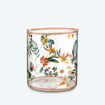 • This thin glass is decorated with a multi-flower color print
